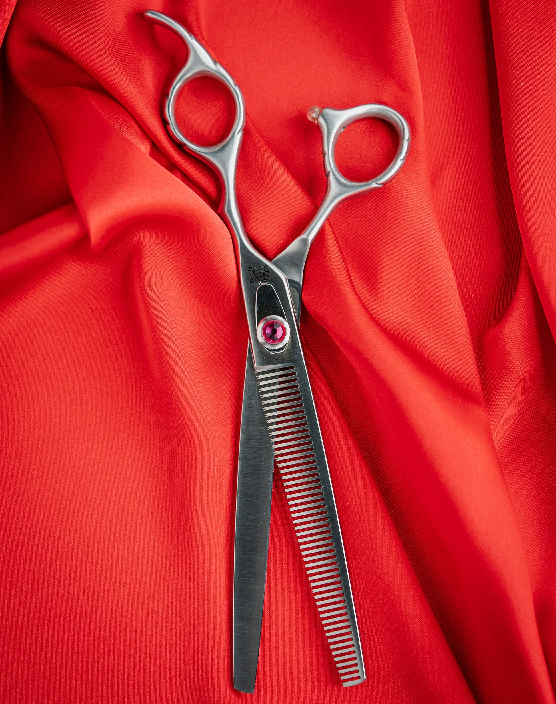Introducing the "TIE ME UP Thinner" from Sexy Shears – a grooming tool that invites you to explore a world of alluring transformations. Crafted with precision, this 7" Thinner with 40 teeth is coated in 420c tantalizing titanium, accompanied by a bevel edge that adds a touch of playful allure to every snip. As your fingers caress its sleek frame, grooming becomes a sensual symphony of style and precision. Surrender to the "TIE ME UP Thinner" and let your pup's coat exude confidence, embodying the captivating charm that's all your own.